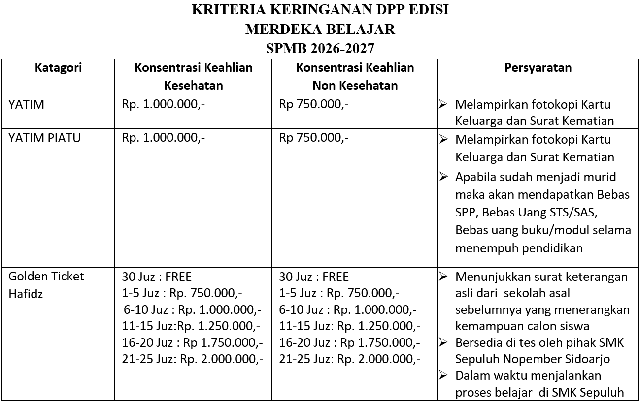Peserta didik untuk memilih kategori keringanan DPP yang sesuai dengan kondisi nyata.