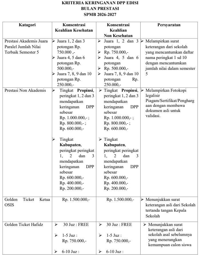 - Bebas buta warna total/sebagian untuk pilihan program keahlian kesehatan.